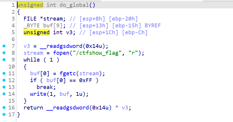 因此当选择选项4时,并不会获得flag,而将打印出ctfshow_flag。