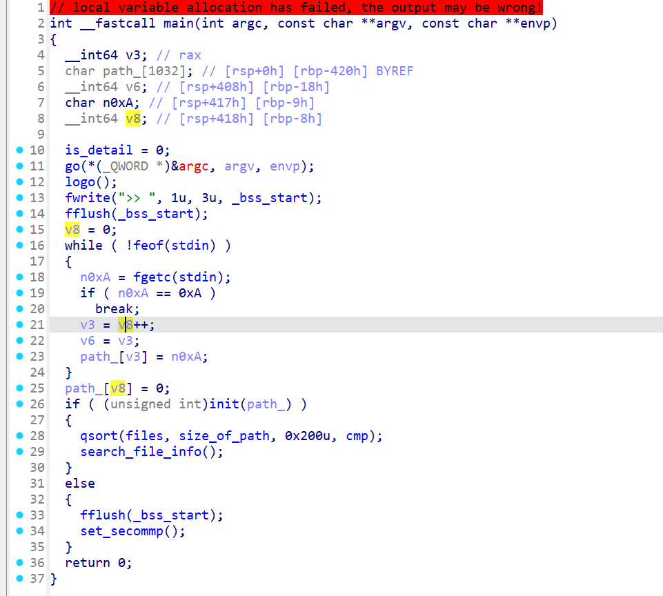 pwn113 一开始看起来有点复杂,但是执行了一下程序大概了解了流程,就是输入一个有效文件路径,就会输出该路径下的所有文件以及权限,但是不可读取
