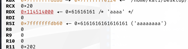 可以看出能够构造出read函数了,只需要将rsi存储地址即可。